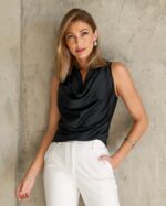 Be the first to review “Marilyn Cowl-Neck Charmeuse Blouse Black” Cancel reply